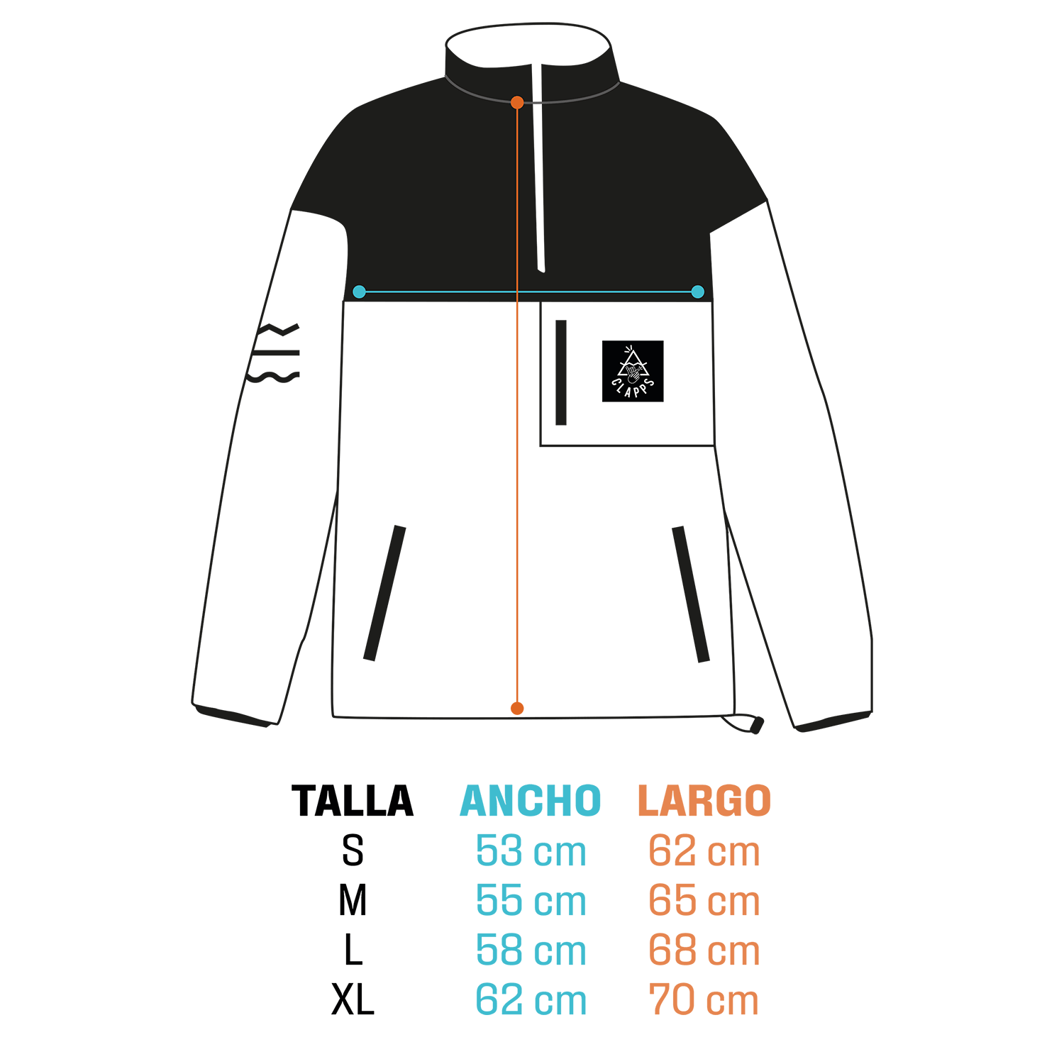 - Bolsillos con cremallera en el pecho y a ambos laterales.